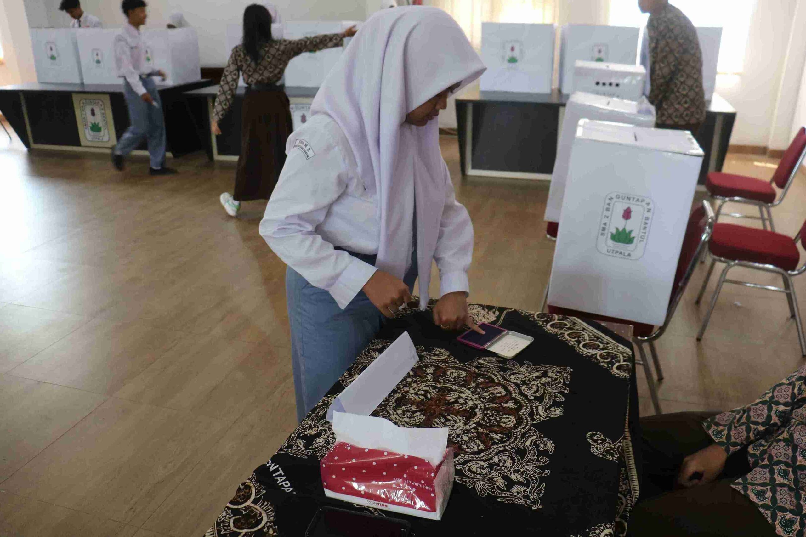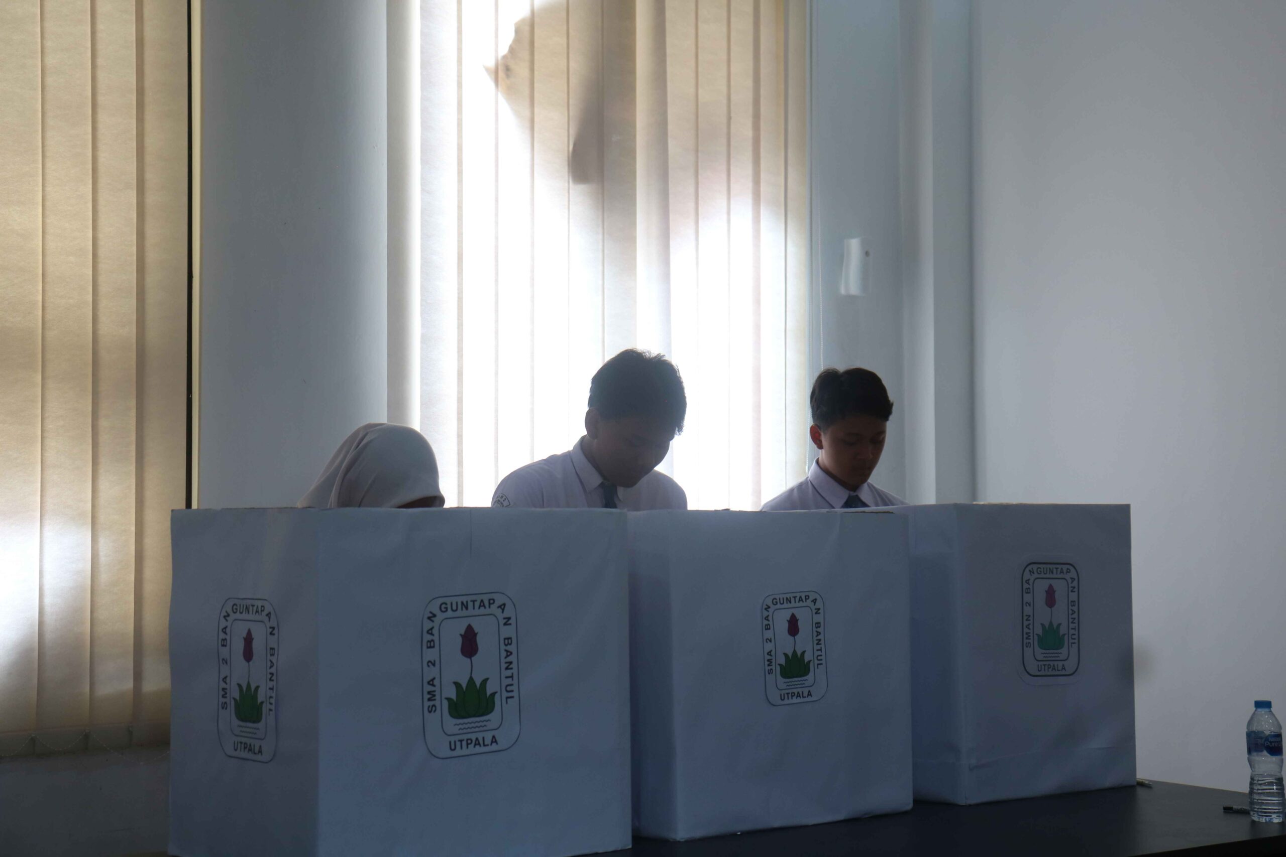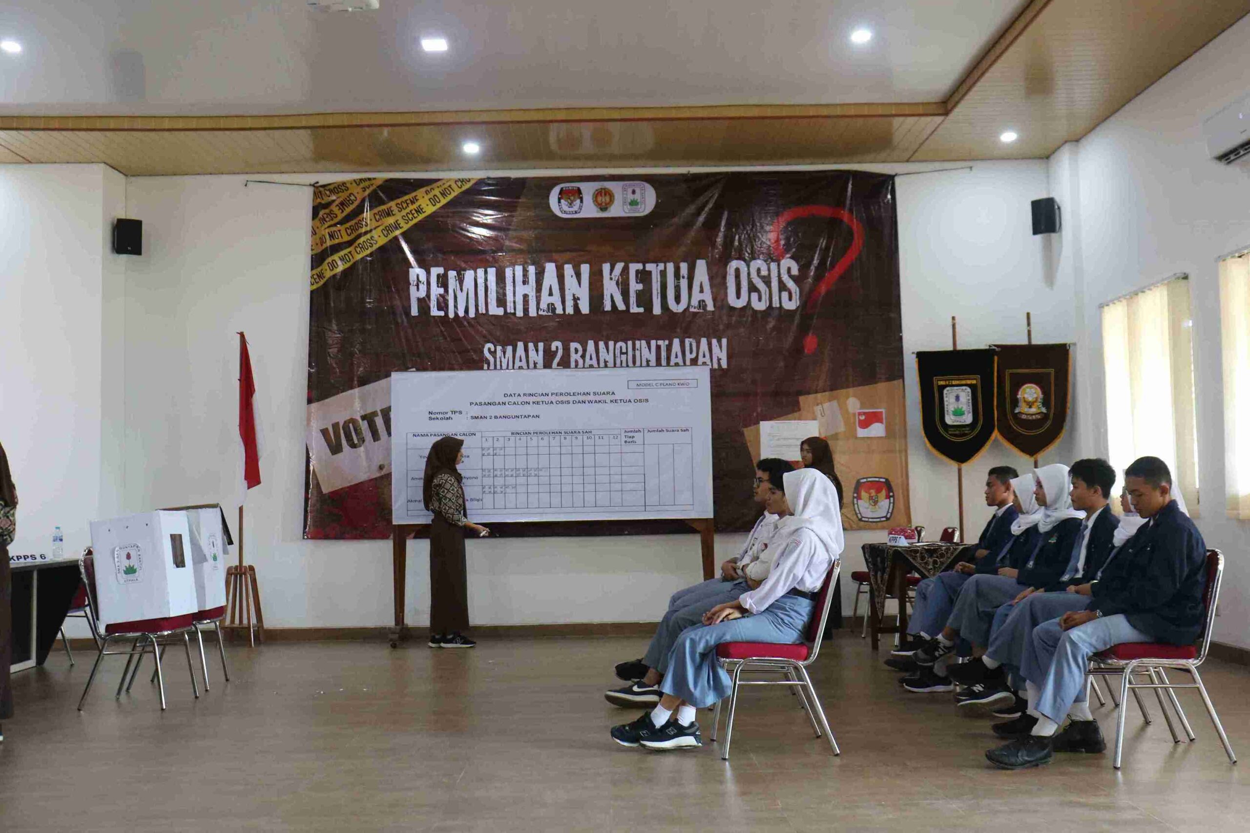 Proses pemungutan suara dilakukan secara langsung di aula SMA Negeri 2 Banguntapan dan dipantau oleh panitia yang terdiri dari guru serta anggota OSIS sebelumnya. Seluruh siswa menggunakan hak pilihnya dengan tertib dan bertanggung jawab.