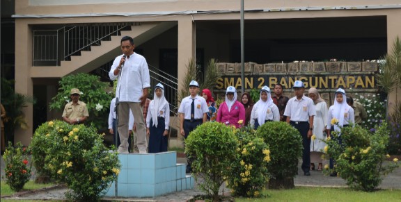 Senin, 14 Juli 2025, SMA Negeri 2 Banguntapan menggelar apel pembukaan Masa Pengenalan Lingkungan Sekolah (MPLS) bagi murid baru tahun ajaran 2025/2026. Kegiatan ini berlangsung di lapangan sekolah dan diikuti oleh seluruh murid baru, dewan guru, tenaga kependidikan, serta perwakilan orang tua/wali murid.