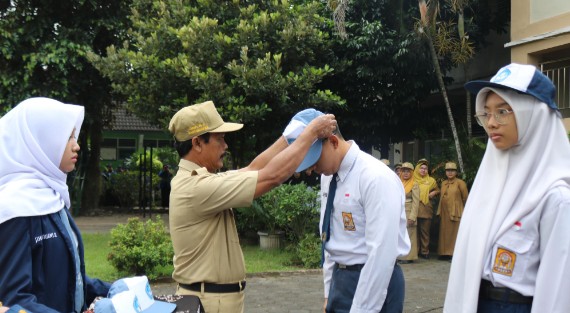 Simbol penyerahan tersebut diterima langsung oleh Kepala Sekolah yang kemudian memakaikan topi SMA kepada perwakilan murid baru sebagai tanda dimulainya masa pendidikan di SMA Negeri 2 Banguntapan.