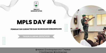 Kamis (17/7), rangkaian kegiatan MPLS hari keempat di SMA Negeri 2 Banguntapan diisi dengan materi yang memperkuat karakter murid, kesadaran hukum, etika pergaulan, dan semangat bela negara. Seluruh materi disampaikan oleh narasumber dari berbagai instansi yang kompeten di bidangnya.