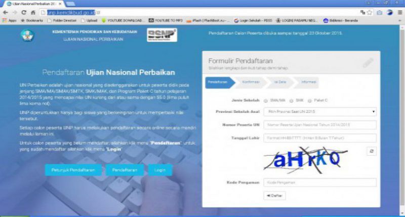 Setiap calon peserta UNP harus melakukan pendaftaran secara online secara mandiri melalui laman ini.