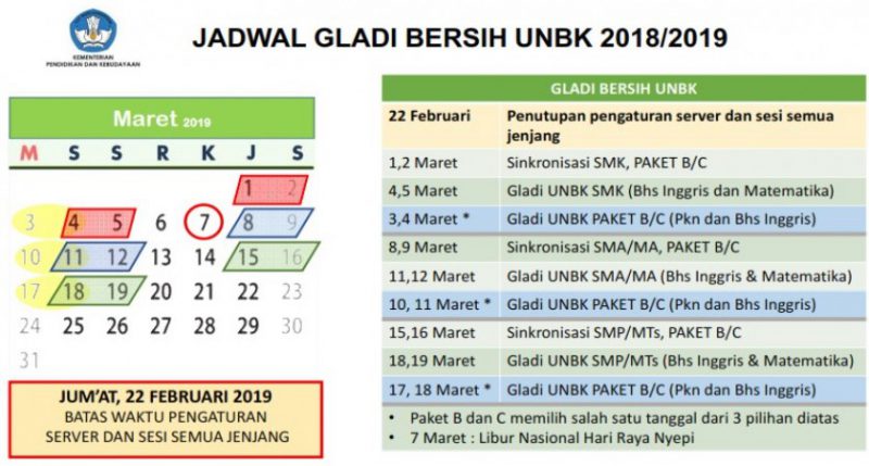 Gladi Bersih UNBK 2019 adalah bertujuan untuk memastikan semua infrastruktur komputer dan jaringan berjalan dengan baik, walaupun terkadang faktor alam juga bisa jadi penghabat terlaksananya UNBK. Namun paling tidak sekolah menjadi siap dan siaga dalam mengatasi segala sesuatu yang tak terduga. Pelaksanaan Gladi Bersih UNBK dilkasanakan pada tanggal 11 dan 12 Maret dengan mata uji Bahasa Inggris dan Mapel Uji Pilihan.